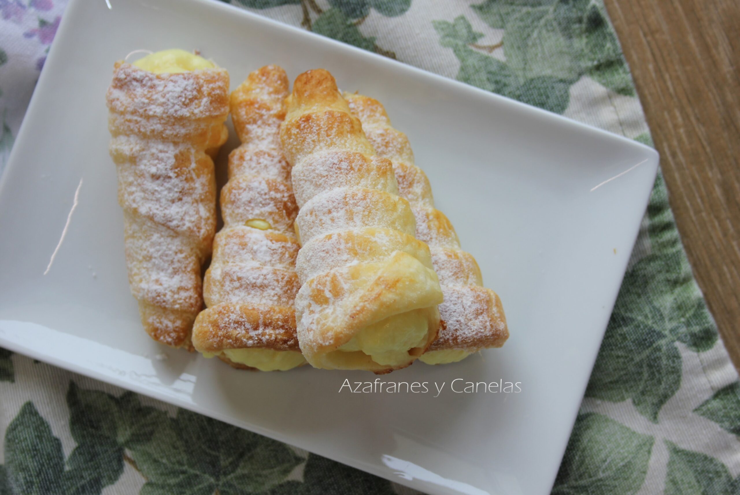 canutillos de hojaldre rellenos de crema pastelera